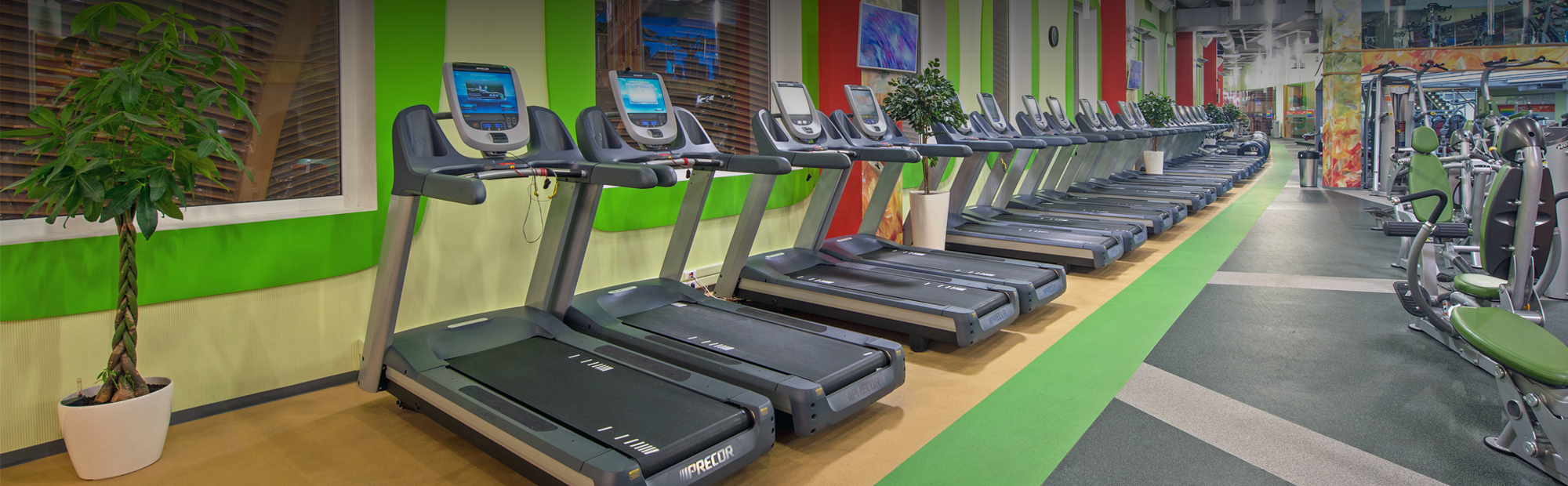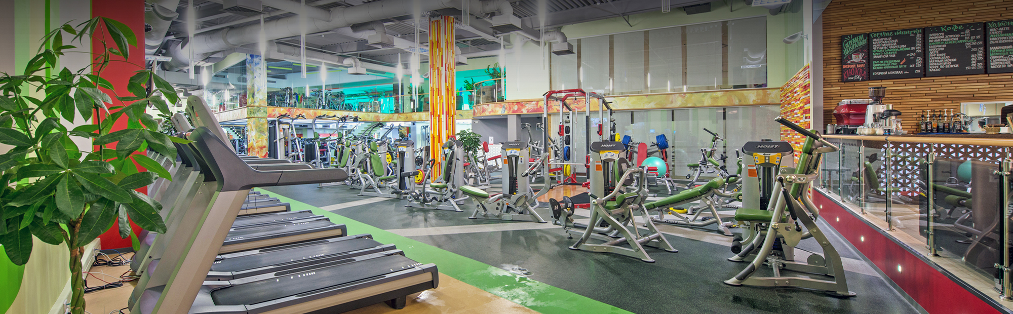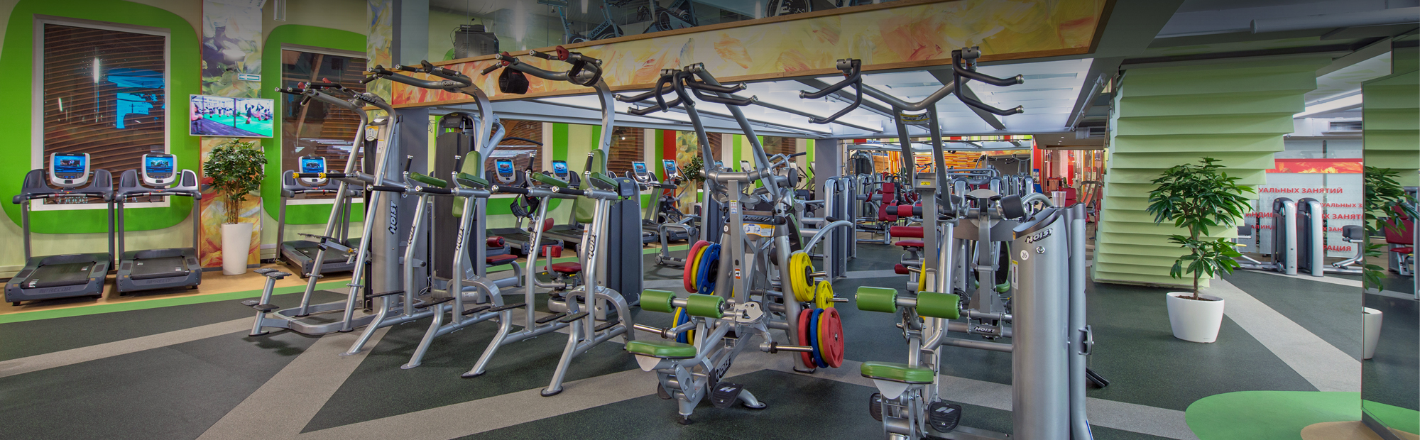 - Залы групповых программ: аксессуары для аэробики AIREX, BOSU, BODY BAR, THE STEP, IRON GRIP, HUGGER MUGGER, ANTIGRAVITY и др.
