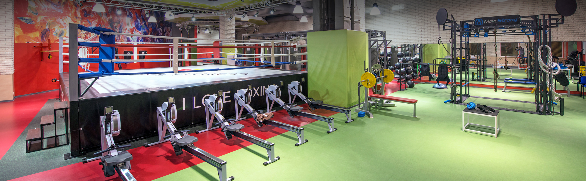 - Зона бокса: многофункциональный подвес FOREMAN, аксессуары PERFORM BETTER, LifeLine, ViCore, Versa Climber, Everlast.