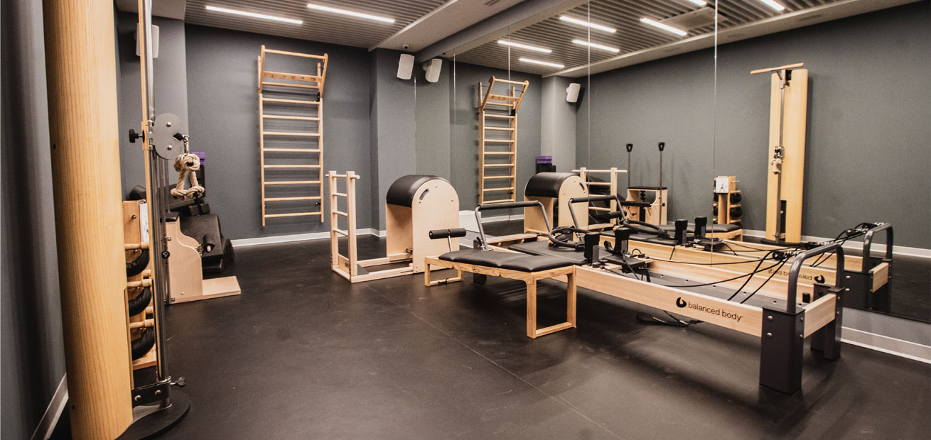 степ-платформы , штанги, коврики и амортизаторы. - Студия пилатес и персонального тренинга оснащена оборудованием американских брендов NOHrD и Balanced Body: реформеры, бочка и