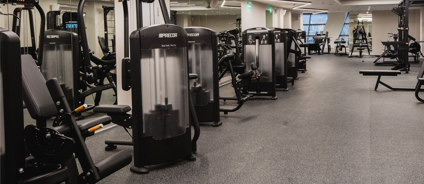 Внутри очень просторно. В тренажерном зале площадью 500 метров установлено топовое оборудование американских брендов: